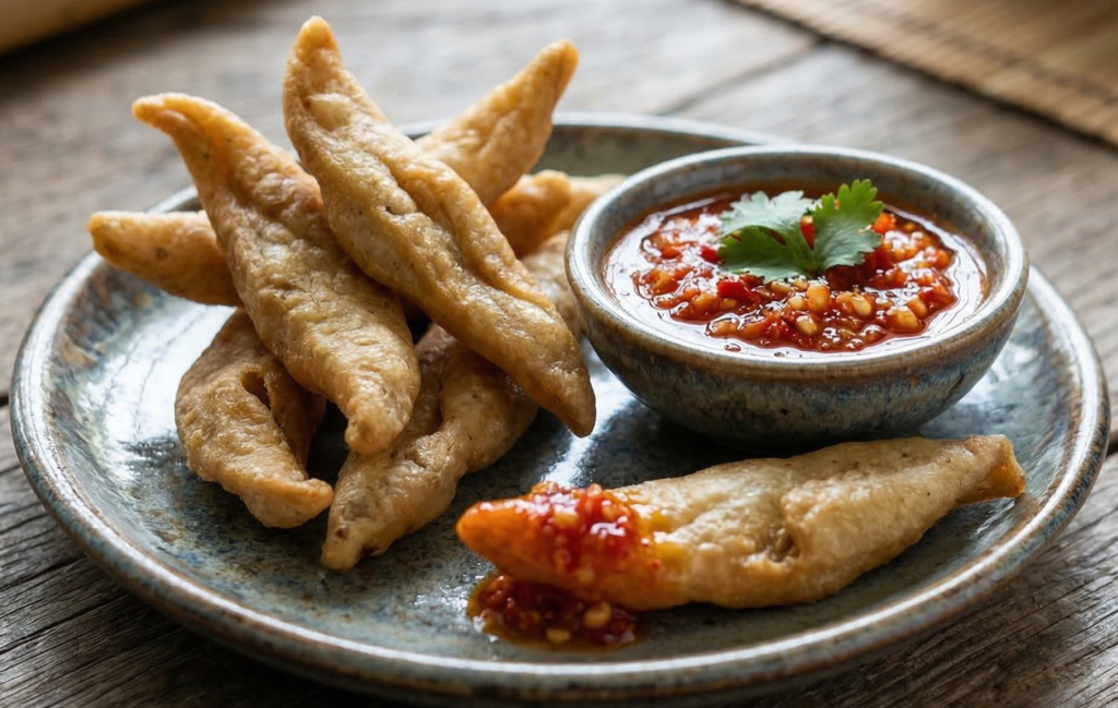 【特徴】: TasteAtlasが発表する「世界のシーフード料理ランキング」において、並み居る海鮮料理を抑えてトップクラス(時期によっては世界1位)にランクインした実績を持つ、国際的な評価も非常に高いソウルフードです。魚のすり身に大量のタピオカ粉を混ぜて茹でた後、高温の油でカリッカリになるまで揚げます。「チュコ(Cuko)」と呼ばれる、パームシュガー、タマリンド、唐辛子で作った「黒くて甘酸っぱく、強烈に辛いタレ」にどっぷり浸して食べるのが最大の特徴です。