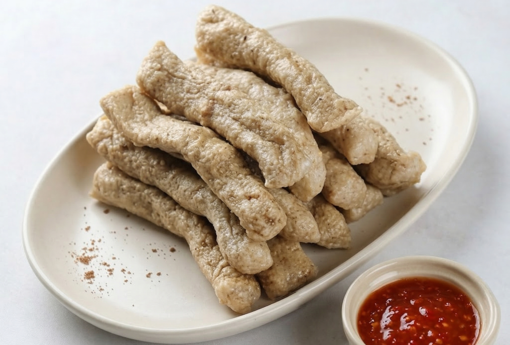 【特徴】: 東海岸トレンガヌ州の絶対的な名物です。魚のすり身にサゴでんぷんを練り込み、長くて太い「ソーセージ」や「縄」のような形に成形して数時間茹で上げます。これをぶつ切りにして高温の油で揚げ、甘辛い特製チリソースをつけて食べるのが定番スタイル。外はカリッと、中はモチモチとした弾力があり、噛むほどに魚の野性味あふれる風味が広がる国民的おやつです。