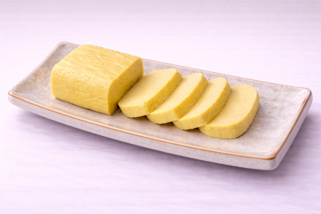 【歴史・特徴】:すり身にたっぷりの卵を練り込んで、カステラのように鮮やかな黄色に仕上げた沖縄独自のねりものです。(※揚げるタイプと蒸す・焼くタイプがあります)。沖縄の伝統的な行事(清明祭など)で神様やご先祖様にお供えする重箱料理には絶対に欠かせない彩りであり、沖縄そばのトッピングとしても定番です。
