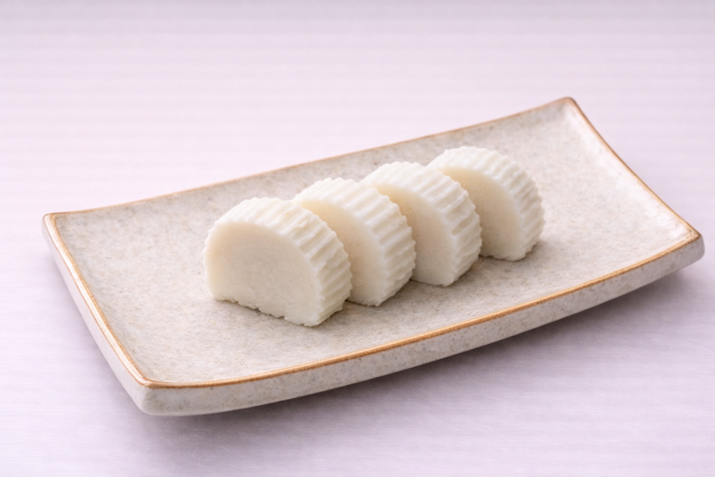 【歴史・特徴】:すり身をストロー状の麦わら(つと)で包み込むように巻いて蒸し上げた、山陰地方の伝統的なかまぼこです。表面のギザギザとした見た目が特徴的で、麦わらのほのかな香りがすり身に移り、素朴で独特の風味を楽しめます。